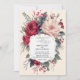Convite de casamento belas flores azuis-vermelhas, verde-comum, creme macio estético