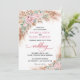 Personalize este convite de casamento romântico com rosas cor-de-rosa pastéis aninhadas entre folhagens e gavinhas emplumadas, uma promessa da beleza e elegância natural que aguarda os seus convidados no seu dia especial. A mistura harmoniosa de beleza floral e acentos naturais cria uma sensação de alegria serena e devoção eterna. Deixe que este convite requintado seja o primeiro vislumbre de uma celebração onde o romance floresce para criar memórias inesquecíveis.