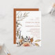 Convite de casamento boho de outono com tons de outono com rosas âmbar e folhagem de outono.