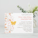 Este design elegante e romanticamente divertido apresenta um ramo marrom claro com flores laranja e amarelas e uma borboleta amarelo-escura. Os nomes da noiva e do noivo estão na mesma cor laranja-avermelhada das flores. A redação está em um tom marrom médio que combina com o ramo e os caules. Isso seria ótimo para um casamento de verão no jardim ou pode ser personalizado em um cartão de aniversário ou convite de chá de panela.