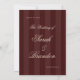 Convide seus convidados com uma elegância atemporal usando este convite de casamento inspirado no vintage. Com um design que apresenta uma moldura romântica em estilo de renda, tons quentes de burgundy e tipografia clássica, este convite captura o charme dos casamentos de antigamente, mantendo-se limpo e refinado. O verso coordenado apresenta espaço para uma foto e um código QR, facilitando o compartilhamento dos detalhes do casamento de uma maneira elegante e moderna. Totalmente personalizável com seus nomes, detalhes do evento, foto e site do casamento.