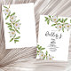 Elevem a sua papelaria de casamento com este elegante e elegante bode expiatório eucalipto deixa convite para casamento rústico. Bastante desenhado com intrincadas folhas de eucalipto e exuberante verde, este convite dá o tom para uma celebração romântica e elegante de casamento. Perfeito para casamentos ao ar livre ou inspirados na natureza, este convite apresenta uma combinação impressionante de elementos naturais e design clássicos. As folhas de eucalipto e de verde são delicadamente ilustradas para criar um belo e caprichoso sentimento. Cada convite é cuidadosamente elaborado para fornecer um toque exclusivo e personalizado ao seu dia especial. Com sua elegante design e beleza natural, este convite certamente impressiona seus convidados e deixa uma impressão duradoura.