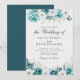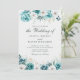 Este convite de casamento floral em tom azul-verde moderno combina tipografia limpa com flores silvestres em aquarela suave para um visual botânico refinado. O fundo marfim realça os tons ricos de azul-verde, criando uma apresentação equilibrada e elegante.