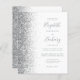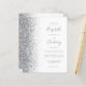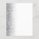 A borda esquerda deste convite de casamento moderno e elegante apresenta uma borda de brilho falso prateado. O texto personalizável combina caligrafia cinza, copperplate e fontes itálicas em um fundo branco. O verso apresenta um design prateado e branco correspondente.