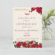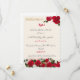 convite de casamento branco com flores vermelhas, design árabe