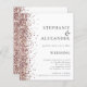Convite de Casamento em Rosa Dourado Falso com Brilho Branco e Código QR. POR FAVOR, NOTE QUE Existem duas opções de papel para escolher para este tamanho (4,5 x 5,6”) na gama Budget. Para este produto, eu recomendaria altamente o semi-brilho, que é um cartão de 110 gsm, semelhante em espessura a um cartão-postal. A opção de Seda é um papel muito mais fino, 80 gsm. O padrão é definido como semi-brilho. As cores e tipos de letra podem ser alterados através do menu de edição. Você também pode alterar as cores de fundo em ambos os lados, se desejar. Seu código QR irá gerar automaticamente para substituir a amostra mostrada quando você substituir a URL de exemplo pela sua própria.