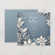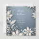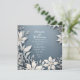 Maravilha mágica quadrada de inverno Convite para apresentação de flores brancas nítidas de inverno contra um pano azul-claro gradiente.