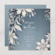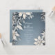 Maravilha mágica quadrada de inverno Convite para apresentação de flores brancas nítidas de inverno contra um pano azul-claro gradiente.