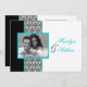 Este convite preto e branco moderno do casamento da foto do damasco tem um quadro azul do aqua com uma área do modelo da foto para que você adicione sua própria foto digital. Seria perfeito para um aqua e enegreceria o casamento temático. O texto e o papel são toda customizáveis. O *** NOTA POR FAVOR que se você muda a pia batismal ou o tamanho da pia batismal, ele pode alterar-se como seu convite imprime. Imprimirá a maneira que você a vê em seu monitor, assim que se você tem edições do alinhamento, ou problemas da cola, contacta-me por favor para a ajuda. Eu não verei seu convite uma vez que você o pede, e Zazzle não editará qualquer coisa (erros tipográficos, alinhamento, etc.). Se você exige o auxílio ou gostaria de quaisquer outros artigos de harmonização, para enviar por correio electrónico por favor seu pedido a niteowlstudio@gmail.com. Os artigos de harmonização existentes são mostrados abaixo.