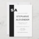 Convite de casamento moderno de Monograma preto e branco. A cor e o tipo da fonte podem ser alterados através do menu de edição. Você também pode alterar as cores do texto e do plano de fundo em ambos os lados, se desejar.