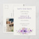 Casamento moderno elegante e elegante, exceto o cartão postal com um buquê floral de cor d'água em tons roxos e lavandas. Perfeito para primavera, verão e casamentos outono modernos, boho e temáticos rústicos. Tipografia moderna da serifa. Composição clássica. Totalmente personalizável. Entre em contato para obter assistência para personalizar ou personalizar seus desejos.
