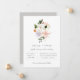 Arranjo floral em aquarela rosa discreto, branco, violeta e laranja elegante, convite de casamento. Design de tipografia cinza moderno e sofisticado. Verso do cartão apresenta cor sólida mostrada em cinza.