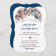Design romântico, elegante, com delicada cor d'água, azul poeirento, buquê de flores rosa, divisor magnífico e, no fundo, um fundo azul marinho. Use a ferramenta Personalizar para adicionar suas informações. Para encontrar itens, por favor, visite minha Coleção de Flores de Rosa Azul Dusty.