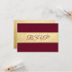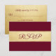 Cartões de resposta de casamento elegantes e modernos em glitter de folha de ouro falso e marsala burgundy. Modelos editáveis - adicione seu texto. Entre em contato com o designer para outras variações. Encontrado na Coleção de Casamentos 'FALL IN LOVE - Burgundy'.