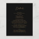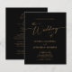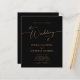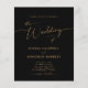Convite de Casamento Preto Elegante com Caligrafia Dourada e Todos os Detalhes no Verso... Nosso exclusivo convite de casamento "Tudo em Um" dourado e preto apresenta caligrafia dourada manuscrita combinada com texto serifado e sem serifa para um convite de casamento simples e elegante. O VERSO do convite contém todos os DETALHES que você normalmente veria em cartões separados no pacote de casamento, incluindo horário e local da recepção, opções de hospedagem, site do casamento, informações de RSVP e lista de presentes. Este convite de casamento de estilo moderno foi projetado para ser elegante e econômico... sem mencionar que economiza tempo. Todo o texto de exemplo (além dos elementos de caligrafia gráfica) pode ser facilmente revisado com suas próprias informações no modelo de personalização.