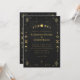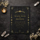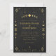Este convite de casamento preto e dourado Celestial Gothic apresenta um design elegante inspirado na astrologia, com fases lunares luminosas, detalhes geométricos no estilo tarot e acentos refinados em ouro antigo sobre um fundo de carvão profundo.