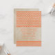Moderno com uma reviravolta vintage é este Convite de Casamento Chic Chevron. Este design apresenta um plano de fundo de aparência de papel antigo e um padrão de gesso zigzag em laranja. Fácil de personalizar, simplesmente adicione seus detalhes de casamento. Clique em "Personalizar" para encontrar mais opções de personalização.