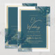 Convite de casamento Chic Dourado de Álcool Azul P