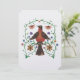 O trabalho de arte pintado à mão neste cartão retrata um retrato folclórico e holandês de um assalto descansado em um pedaço de flor.