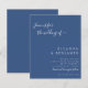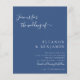 Este convite de casamento apresenta um rico fundo azul com letra manuscrita elegante e tipografia minimalista limpa. O layout simples cria um visual atemporal e refinado para uma celebração moderna. Uma escolha linda para casais que amam papelaria de casamento azul clássica com um toque elevado. ***impresso em um tipo de papel econômico