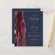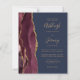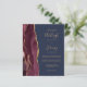 Economize no custo de impressão e envio de cartões RSVP separados com este convite de casamento econômico, moderno e elegante, tudo em um. A borda esquerda apresenta uma borda de ágata em aquarela burgundy aparada com brilho falso dourado. O texto personalizável combina escrita à mão em dourado, fontes copperplate e itálico em um fundo azul-marinho. O verso fornece espaço para detalhes do casamento em um fundo azul-marinho sólido, juntamente com um código QR que os convidados podem escanear para visitar seu site e responder. OBSERVAÇÃO: os envelopes não estão incluídos automaticamente com esses convites econômicos, então lembre-se de escolher a opção "envelopes brancos em branco"!