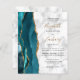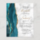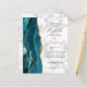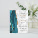 A borda esquerda deste convite de casamento moderno e elegante apresenta uma borda de água-marinha azul-esverdeada com acabamento em brilho dourado falso. O texto personalizável combina caligrafia dourada com fontes copperplate preta e itálica sobre um fundo de mármore cinza e branco. Adicione detalhes adicionais no verso, junto com um código QR para ajudar os convidados a visitar o site do seu casamento.