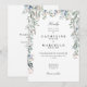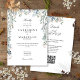 Um convite de casamento floral aquarelado de flores silvestres elegante com os detalhes da celebração do seu casamento em tipografia branca chic. Com os detalhes do seu site de casamento e seu código QR no verso. Projetado por Thisisnotme©