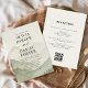 Convide os seus convidados para a sua celebração na montanha com estilo com este convite de casamento de montanhas floresta rústica com uma paisagem suave em aquarela e layout moderno. Um código QR embutido torna as respostas sem esforço, enquanto os tons naturais verdes e matizados criam uma atmosfera serena e atemporal. Perfeito para casamentos de destino, locais de floresta ou casais que amam o ar livre. Totalmente editável para seus nomes, data, local e link.