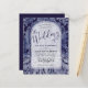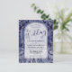 Desenho elegante com uma ilustração de damasco em aquarela sobre um azul marinho profundo. Sobre isso, um desenho em arco em branco transparente, que forma o pano de fundo para os detalhes do seu casamento. Clique em 'personalizar este modelo' para alterar o texto.