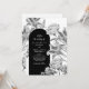 Convites de casamento preto e branco com flora, apresentando um fundo branco simples, flores de jardim em tons de cinza elegantes pintadas à aguarela, e um modelo de casamento moderno que pode ser facilmente personalizado.