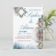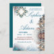Traga elegância atemporal para o seu dia especial com este convite de casamento inspirado no Marrocos, apresentando tons luxuosos de azul-turquesa, detalhes em dourado suave e padrões intricados de arabescos.