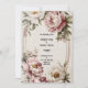 Um design elegante de flores de peônia em forma oval em cores pastéis. A frente do cartão tem o convite, nomes da noiva e do noivo, data e endereço do grande dia. A parte de trás do cartão tem o código de vestimenta, mas todo o texto é editável para que você possa remover e colocar o que precisar para atender às suas necessidades específicas. Conteúdo gerativo.