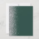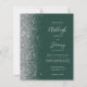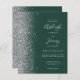A borda esquerda deste convite de casamento moderno e elegante apresenta uma borda de brilho falso prateado. O texto personalizável combina escrita à mão em cinza prateado claro, fontes copperplate e itálico em um fundo esmeralda verde. O verso apresenta um design correspondente em esmeralda verde e prata.