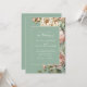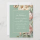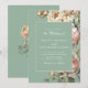 Um convite de casamento refinado em verde salvia com um buquê de peônia centralizado e flores suaves em tons de blush e marfim. O layout botânico equilibrado oferece uma estética de jardim romântica e estruturada, ideal para casamentos de primavera e verão.