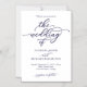 Convite de Casamento com Caligrafia Azul-Marinho Elegante