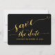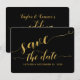 Convite de casamento com caligrafia dourada em fundo preto clássico e envelope Save The Date.