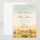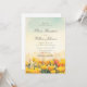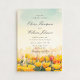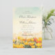 Este convite de casamento romântico apresenta uma suave paisagem em aquarela de flores silvestres em flor pintadas em tons quentes dourados e florais sob um céu suave. O estilo de pincelada artística cria a sensação de um prado ensolarado na hora dourada, dando ao design uma atmosfera emocional e sonhadora que muitas mulheres adoram para celebrações emocionais e inspiradas na natureza.