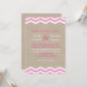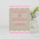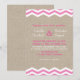 Chevrons rosa brilhante e branco em um fundo ilustrado de estopa acentuam este convite de casamento. Role para baixo para ver a coleção completa.