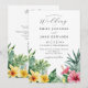 Este convite de casamento elegante com flores tropicais em aquarela pode ser personalizado com suas informações em tipografia moderna com o código QR do seu site de casamento no verso. Criado por Thisisnotme©