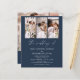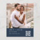Convite de Casamento Azul-Marinho O casamento de elegante moderno código QR, quatro (4) colagem de fotos e data grande convite de casamento minimalista. Os cartões de convite de casamento contêm uma tipografia moderna que é elegante, simples e moderna para usar após a sua celebração de casamento minimalista simples.