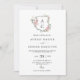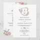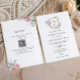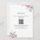 Convite de casamento completo com código QR e brasão de monograma floral rosa delicado.