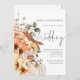 Outono Floral Abóbora Script Código QR Casamento. Adicione o seu código QR ao site do seu casamento no verso, o que torna esta uma opção conveniente para que os seus convidados respondam e vejam todos os detalhes sem a necessidade de cartões separados de RSVP e detalhes. O seu código QR será gerado automaticamente quando você substituir a URL de exemplo pela sua própria. Um conjunto de script manuscrito para Casamento e o resto do texto que você pode facilmente personalizar. Flores de outono e abóbora descem pelo lado esquerdo e atravessam a parte inferior e também estão no verso,