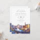 Este convite de casamento em aquarela com o horizonte de Las Vegas pode ser personalizado com suas informações em tipografia elegante com o código QR do seu site de casamento no verso. Projetado por Thisisnotme©
