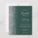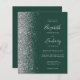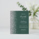 A borda esquerda deste convite de casamento moderno e elegante apresenta uma borda prateada com efeito de brilho. O texto personalizável combina caligrafia prateada, fonte copperplate e itálica em um fundo verde esmeralda. Adicione detalhes adicionais no verso, juntamente com um código QR para ajudar seus convidados a visitar o site do seu casamento.