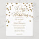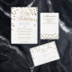 Convites de Casamento Elegantes com Confetes e Brilho em Dourado Branco.