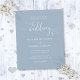 Este convite de casamento elegante e econômico pode ser personalizado com os detalhes da sua celebração em tipografia sofisticada em um fundo azul poeirento. Criado por Thisisnotme©