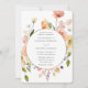 Um belo convite de casamento com uma delicada grinalda floral em aquarela com flores pastéis. As cores suaves e a escrita elegante criam um design romântico e atemporal, perfeito para celebrar.