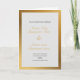 Este convite de casamento editável apresenta um layout chic minimalista enquadrado por uma luxuosa fronteira do efeito ouro, mostrando uma caligrafia elegante para os nomes do casal e uma área clara para detalhes de data e local. Os pares de tipografia moderna com estilo clássico, e todos os elementos, incluindo nomes, data de casamento, endereço, fontes, cores e tamanhos, podem ser personalizados para se adequarem à celebração. Observe que o ouro é impresso a cor.
