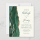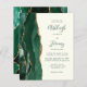 A borda esquerda deste convite de casamento moderno e elegante apresenta uma borda de ágata em água-marinha esmeralda com brilho dourado falso. O texto personalizável combina fontes script, copperplate e itálico em verde esmeralda sobre um fundo marfim. O verso apresenta um design correspondente em esmeralda e ágata dourada.