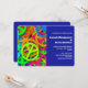 Um convite de casamento com um estilo dos anos sessenta. Sinal de paz legal em cores neon brilhantes e vibrantes com todas as cores do arco-íris.